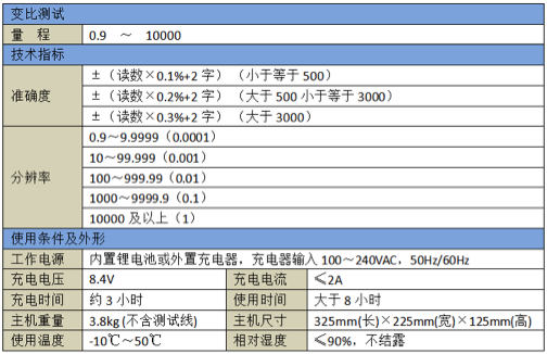 ▲量程宽、精度高,变比测量范围可达10000,且最高值10000时测试精度保证0.3%。